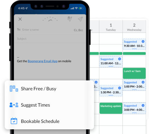 Boomerang's scheduling features save you and your guests time by eliminating back-and-forth emails, double bookings, and missed meetings due to typos.